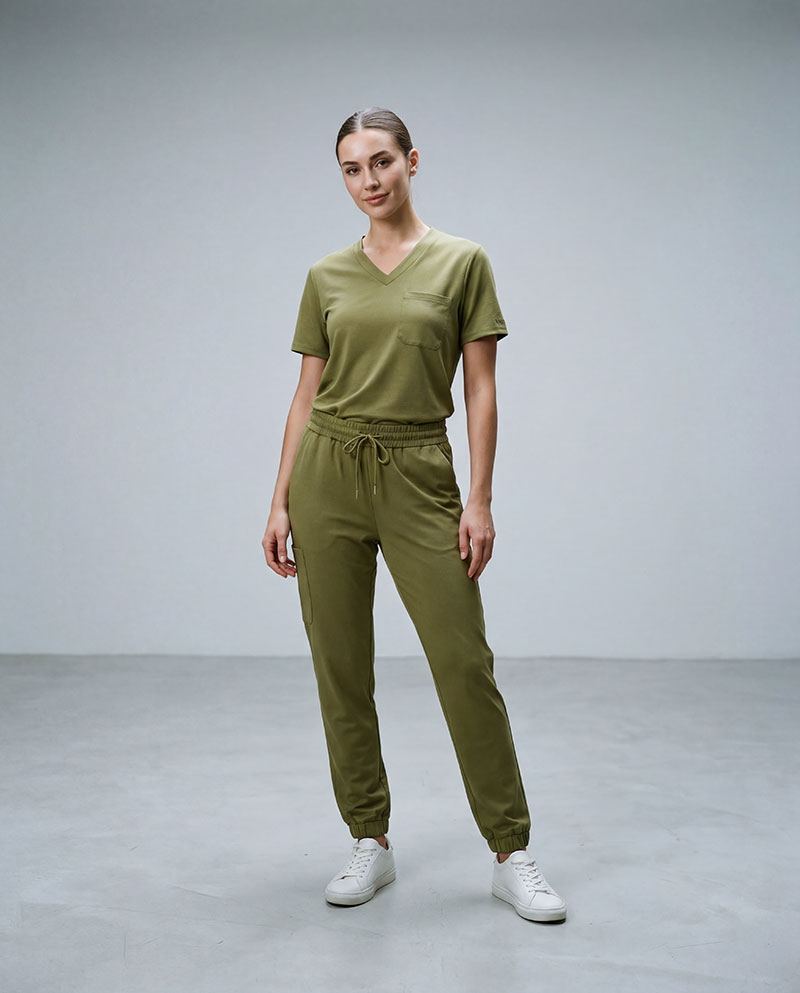 Elevate your work wardrobe with our Women's Scrub Set in Olive. Designed for healthcare professionals who need comfort, style and practicality, this set features soft, breatheable fabric that moves with you. Durable, versatile and effortlessly stylish, this scrub set is perfect for long shifts and busy days.